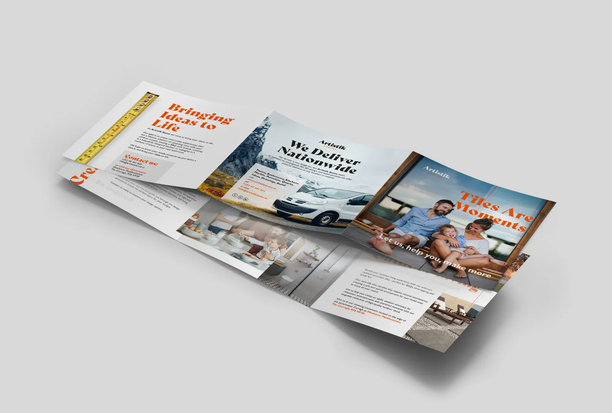 The refreshed branding of Artistik Stone captures the seamless and refined experience of their business, from buying to fitting tiles. The new logo and visual style focus on simplicity and sophistication, reflecting their dedication to customer satisfaction. The modern, timeless design showcases the precision and care involved in selecting, purchasing, and installing their top-quality tiles.